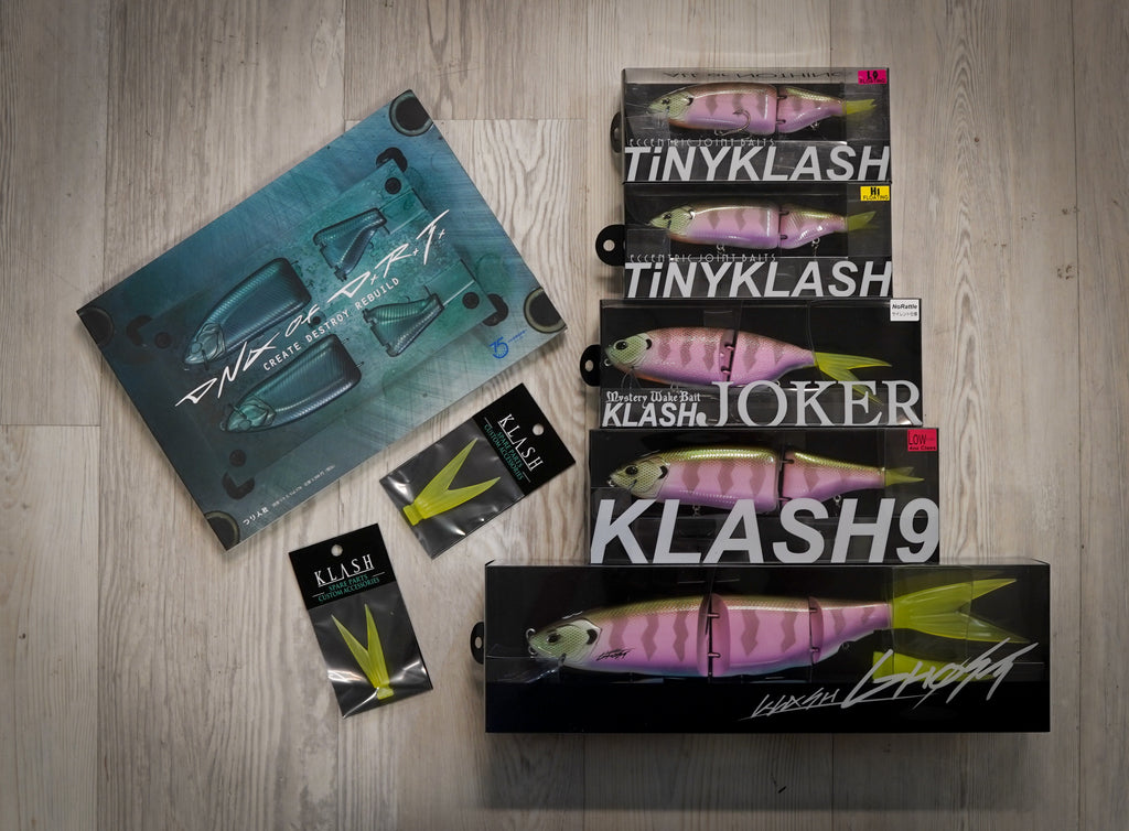 Tiny Klash Low Float, Tiny Klash Hi Float, Joker, Klash9, Ghost, TK Chartruese V tail, K9 Chartruese V tail, and the DNA of DRT Book.